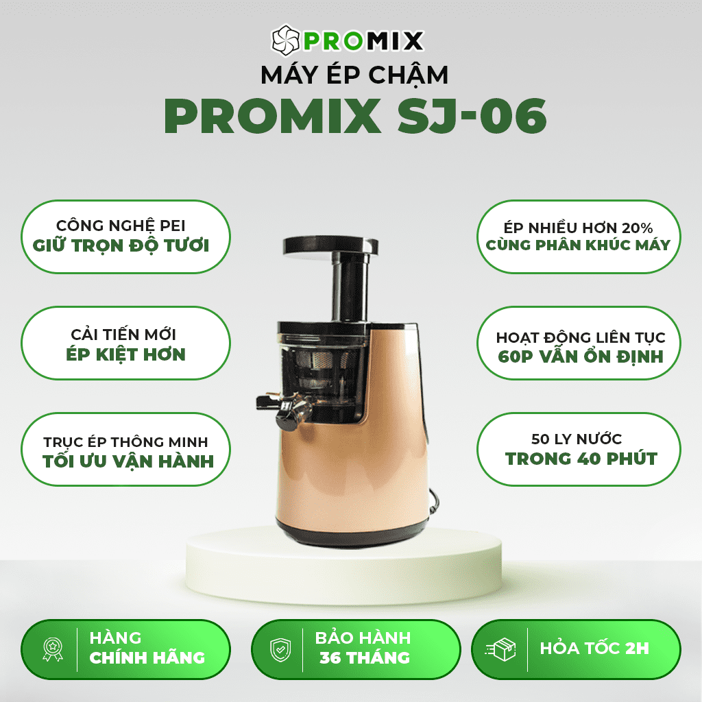 Giữ trọn hương vị trong từng ly nước ép, Promix SJ-06 với công nghệ PEI cùng những cải tiến vượt trội có thể dễ dàng đem đến chất lượng tuyệt hảo với độ ổn định cao nhất, phù hợp những mô hình đề cao hương vị tươi mới trong đồ uống.